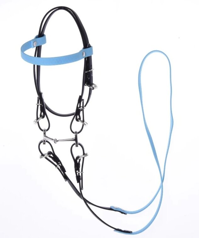 Uzdečka bez nánosníku pro hobby horse LarDen, sv.modrá čelenka,vel. S