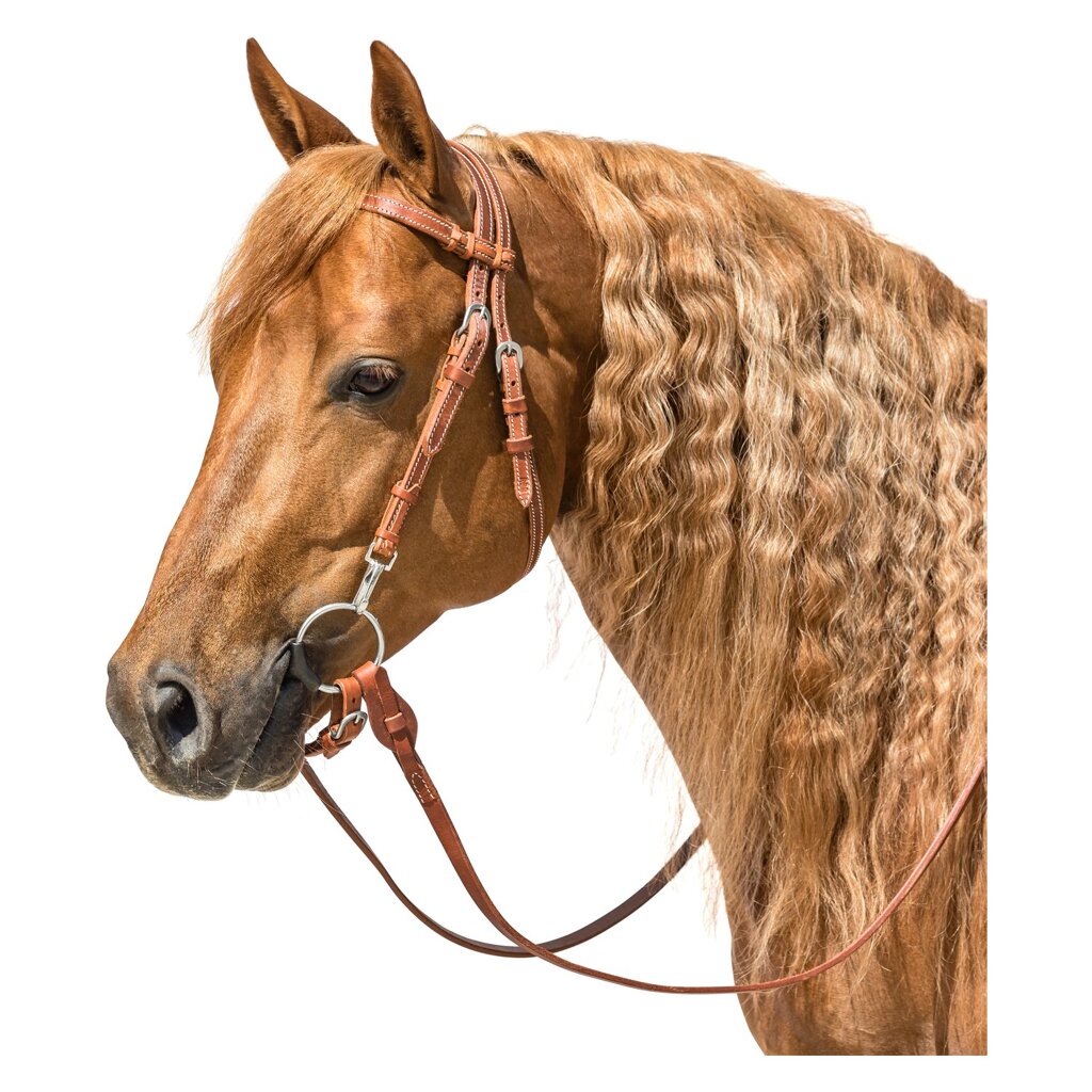 Robustní westernová uzdečka vyrobená z té nejlepší hovězí kůže. Uzdečka má bílé prošití, klasickou čelenku a praktické a rychlé upínání udidla pomocí karabiny.• vysoce kvalitní hovězí kůže