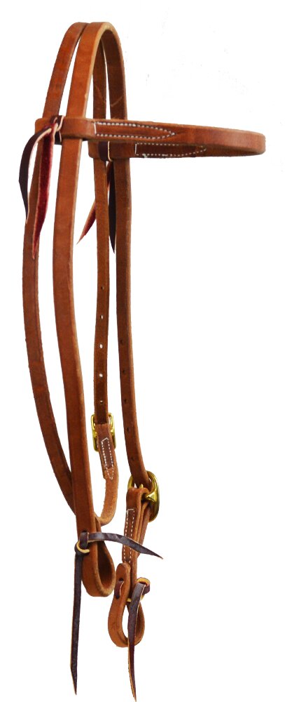 Westernová uzdečka Paul Taylor s klasickou čelenkou z vysoce kvalitní olejované kůže s mosazným kováním a koncovkami na vázání.!!! Vyjímkou u této uzdečky je, že má pouze jednu přezku na lícnici, ne na obou, jak tomu klasicky bývá !!!