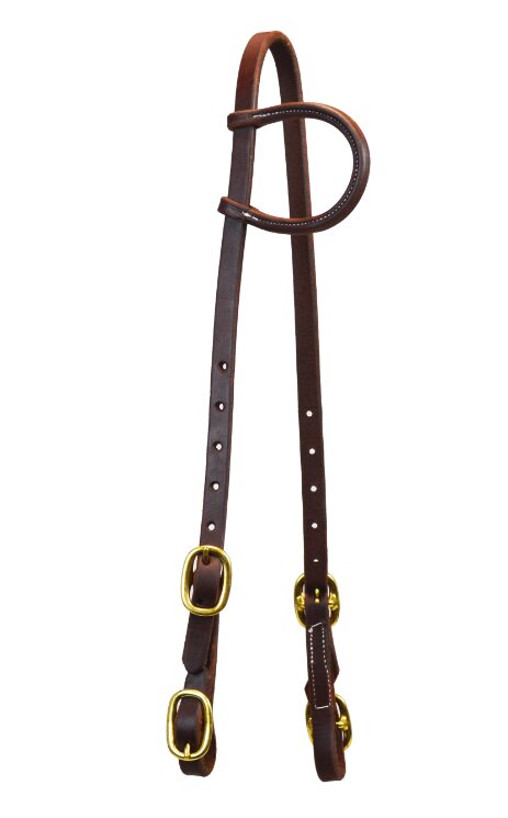 Westernová uzdečka Paul Taylor na jedno ucho z vysoce kvalitní olejované kůže s mosazným kováním a koncovkami na vázání.