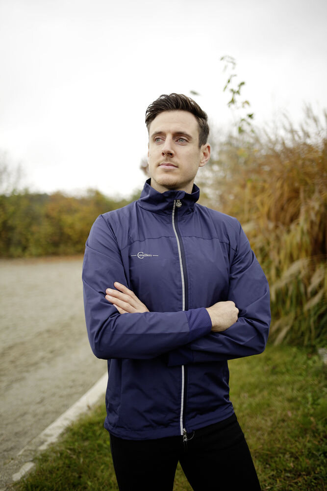 Pánská větrovka se stojáčkem a reflexními prvky.prodloužené manžety s otvory na palce