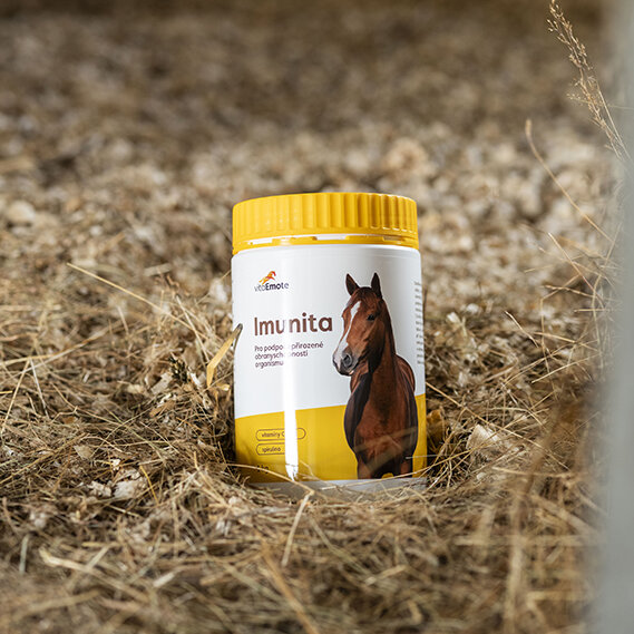 Doplňkové krmivo pro koně s vysokým obsahem vitamínu C, D, E, konopnými výlisky a spirulínou pro podporu přirozené obranyschopnosti organismu.