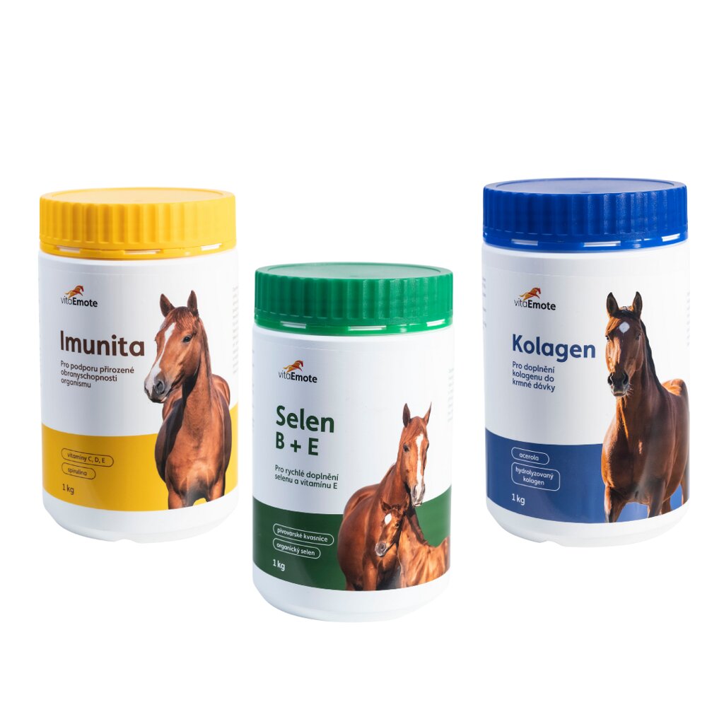 Dopřejte svým klisnám cílenou podporu zdraví, kondice a reprodukční výkonnosti s výhodnou sadou VitaEmote. Kombinace tří prémiových doplňků byla navržena tak, aby poskytla potřebné živiny pro klisny v zátěži, březosti nebo laktaci.