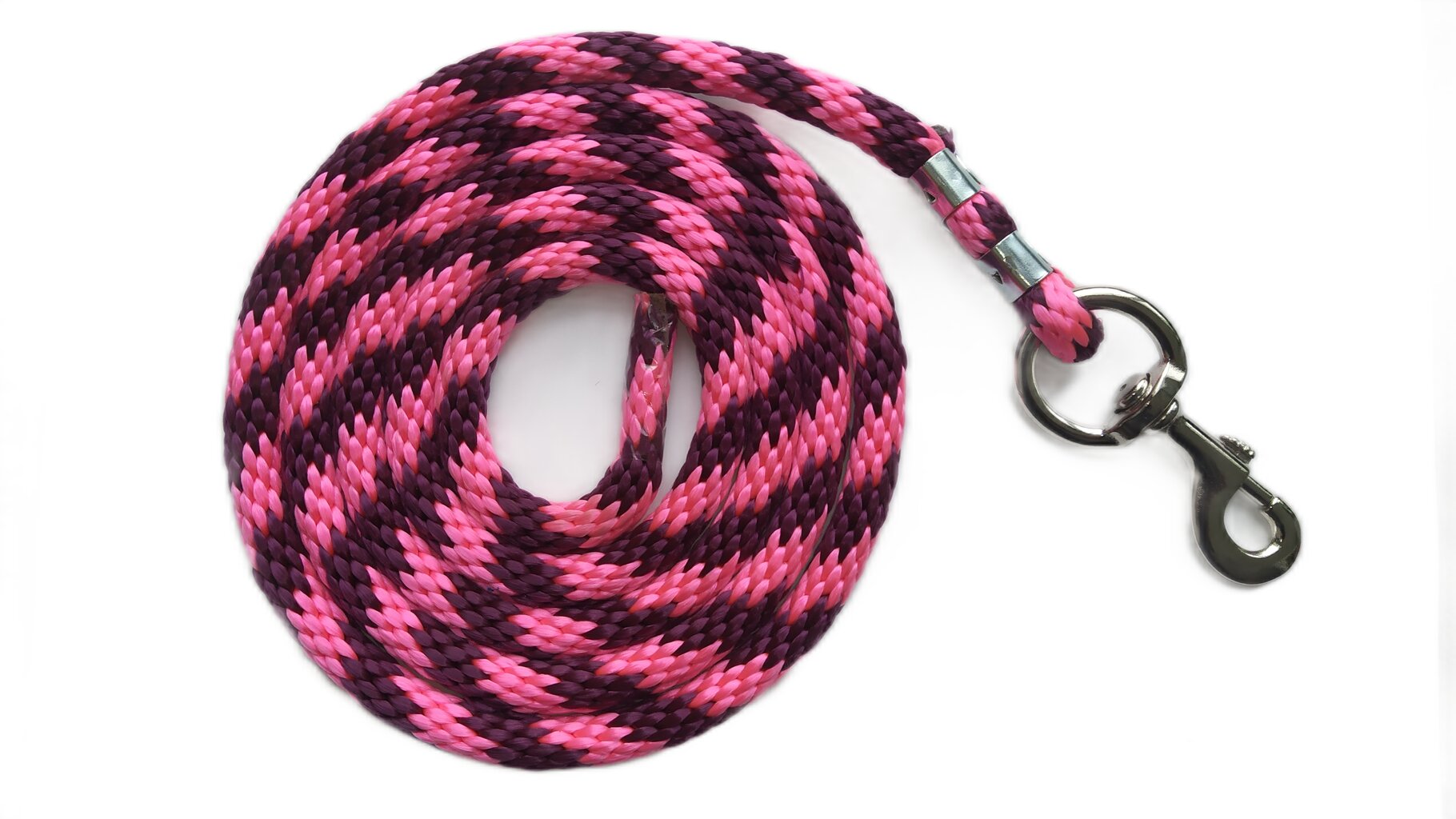 Velmi příjemné kulaté vodítko z příčně spleteného lana s pevnou, niklovou karabinou.