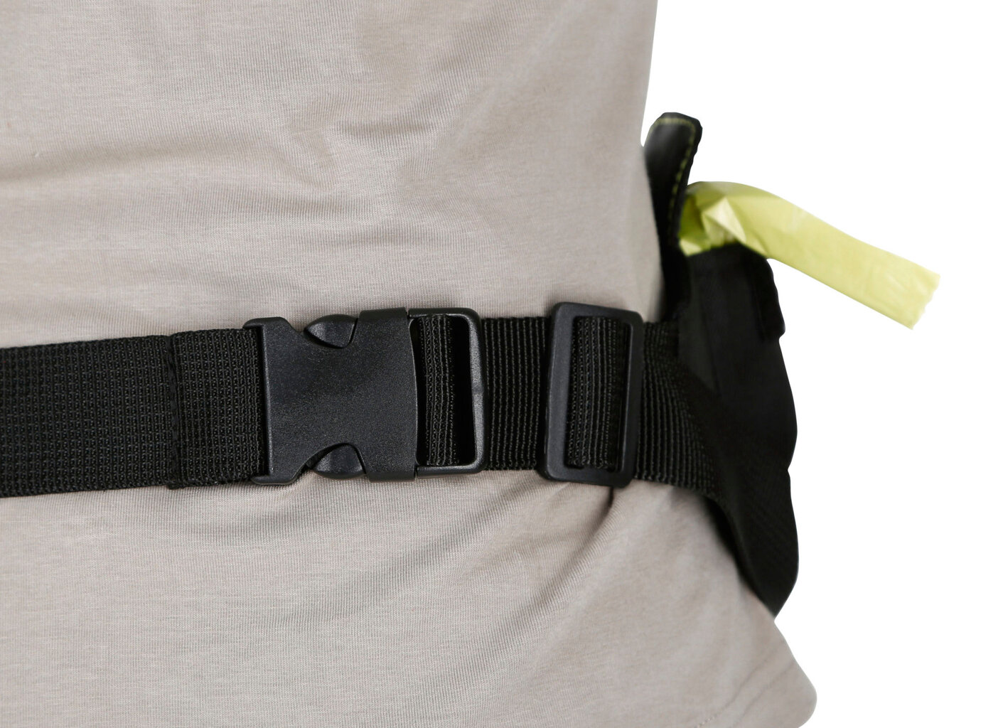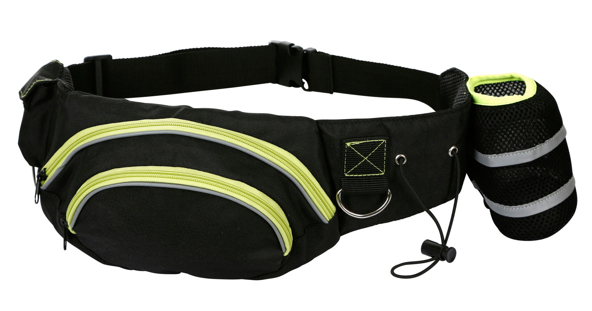 - vybavená dvěma kapsami na zip, D-kroužkem, kapsou pro sáčky na psí exkrementy a kapsou na láhev s pitím
