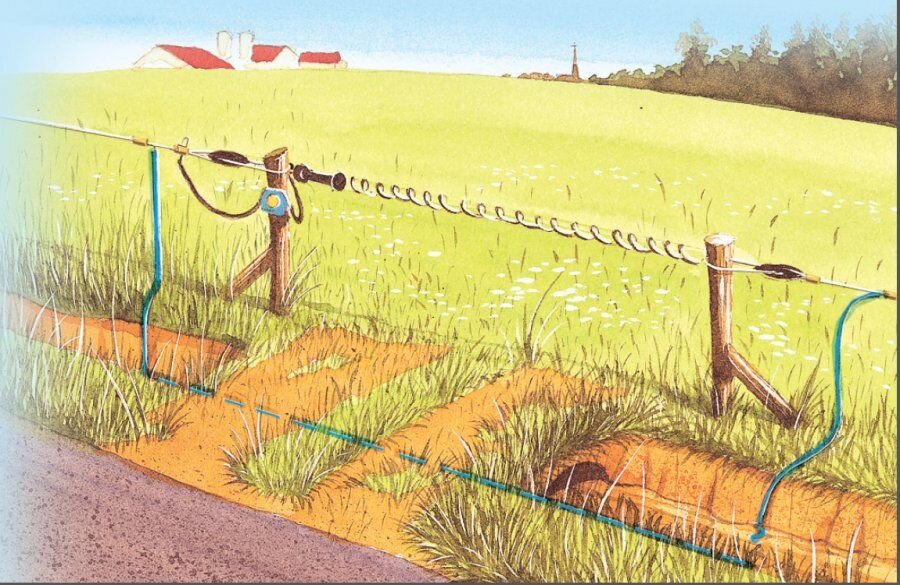 - Při zakopání kabelu do země je vhodné protáhnout tento vysokonapěťový kabel chráničkou (např. zahradní hadice).