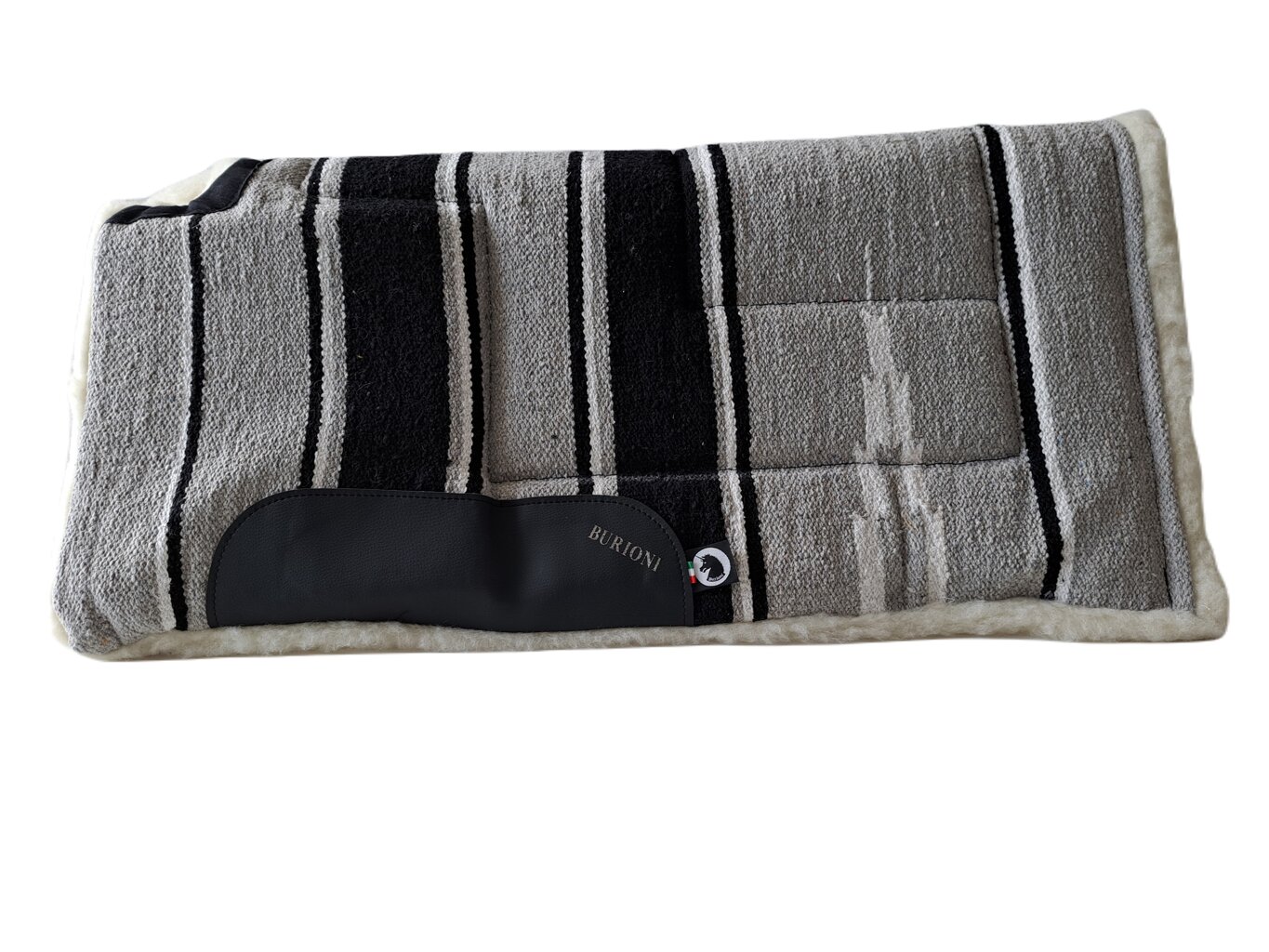 Korekční westernová deka pod sedlo s výztuhou kohoutku, vhodná pro koně s opadlými svaly okolo kohoutku nebo pro užší typy koní. Deka je podložena přírodním beránkem.