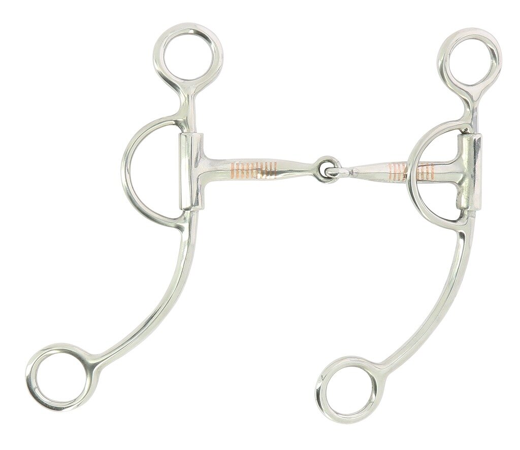Westernová nerezová lomená páka s měděnými proužky v udítku.• nerezová lomená páka
