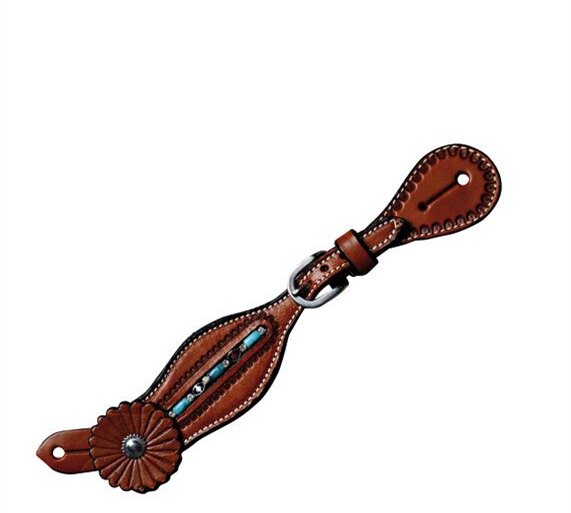 Stylové westernové řemínky na ostruhy Zuni spojují tradiční design a kvalitní zpracování. Jsou vyrobeny z pevné, ale poddajné kůže, která se přizpůsobí botě i noze jezdce a zajistí pohodlné nošení při každé jízdě. Díky elegantnímu zdobení a kvalitní kovové přezce působí velmi esteticky a spolehlivě drží ostruhy na místě.