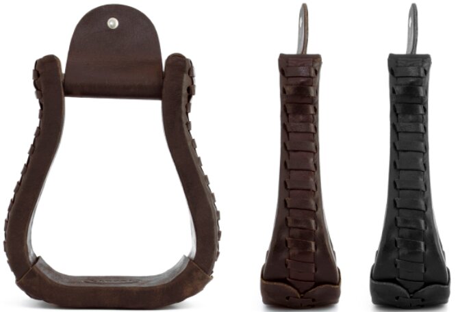 Plastové, lehké westernové třmeny obaleny olejovanou kůží.• šířka nášlapné části: cca 5 cm