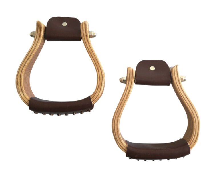 Vysoce kvalitní westernové třmeny ze dřeva s nášlapnou částí obalenou kůží.• dřevěné třmeny