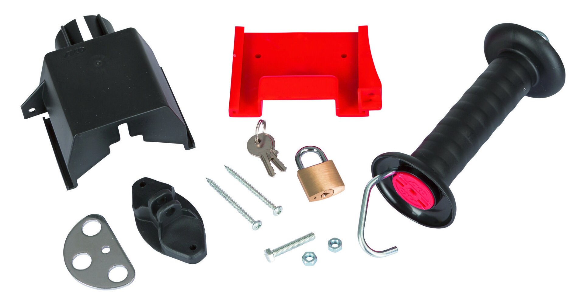 Zámek bránové rukojetiK uzamčení elektrických ohrad jakou ochranou před chyklisty, houbaři a všemi, kteří procházejí přes ohradu a poté hrozí nebezpečí útěku zvířat.