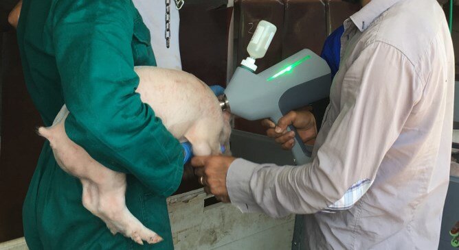 První ruční zařízení bez jehly pro intramuskulární injekci selat!• vynikající výsledky očkování díky přímé zpětné vazbě po každé injekci prostřednictvím LED signálů na obou stranách zařízení